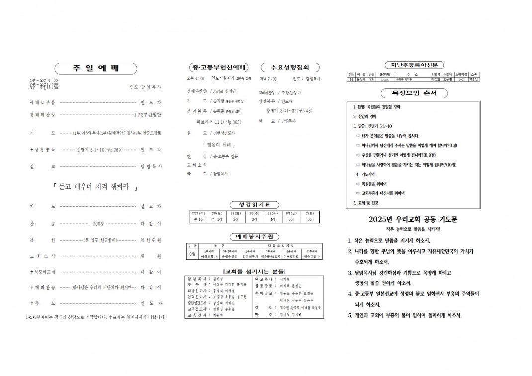 2025. 7. 27 주보 페이지 정보 작성자최고관리자 댓글 0건 조회 280회 작성일 25-07-25 20:49 본문 . 첨부파일 20250727.pdf (338.5K) 2회 다운로드 | DATE : 2025-07-25 20:49:07 목록 이전글2025. 8. 3 주보 25.08.01 다음글2025. 7. 20 주보 25.07.18 댓글목록 댓글목록 등록된 댓글이 없습니다.
