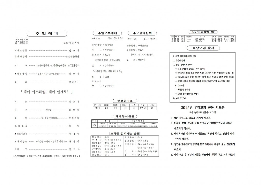 2025. 8. 10 주보 페이지 정보 작성자최고관리자 댓글 0건 조회 286회 작성일 25-08-08 19:49 본문 . 첨부파일 20250810.pdf (338.6K) 4회 다운로드 | DATE : 2025-08-08 19:49:09 목록 이전글2025. 8. 17 주보 25.08.14 다음글2025. 8. 3 주보 25.08.01 댓글목록 댓글목록 등록된 댓글이 없습니다.