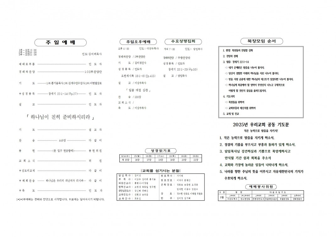2025. 9. 14 주보 페이지 정보 작성자최고관리자 댓글 0건 조회 236회 작성일 25-09-12 19:40 본문 . 첨부파일 20250914.pdf (328.6K) 3회 다운로드 | DATE : 2025-09-12 19:40:39 목록 이전글2025. 9. 21 주보 25.09.19 다음글2025. 9. 7 주보 25.09.05 댓글목록 댓글목록 등록된 댓글이 없습니다.