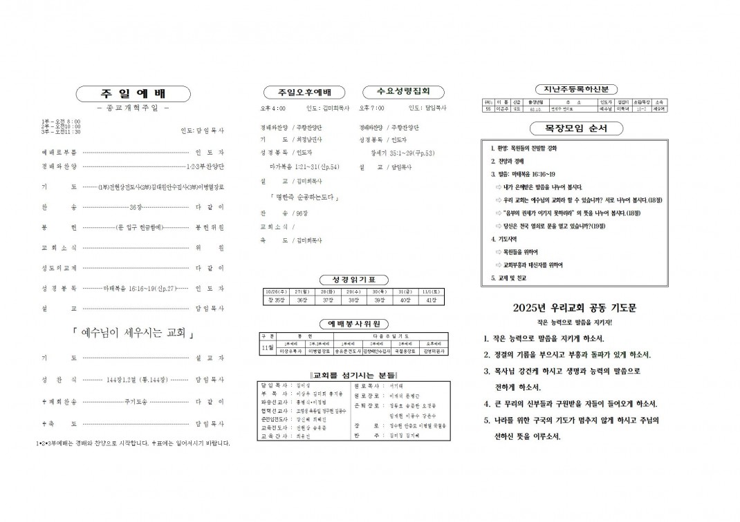 2025. 10. 26 페이지 정보 작성자최고관리자 댓글 0건 조회 220회 작성일 25-10-24 22:00 본문 . 첨부파일 20251026.pdf (338.3K) 3회 다운로드 | DATE : 2025-10-24 22:00:21 목록 이전글2025. 11. 2 주보 25.10.31 다음글2025. 10. 19 25.10.17 댓글목록 댓글목록 등록된 댓글이 없습니다.