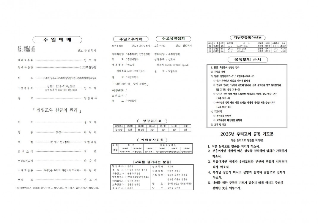 2025. 11. 9 주보 페이지 정보 작성자최고관리자 댓글 0건 조회 231회 작성일 25-11-07 19:26 본문 . 첨부파일 20251109.pdf (341.4K) 5회 다운로드 | DATE : 2025-11-07 19:26:52 목록 이전글2025. 11. 16 주보 25.11.14 다음글2025. 11. 2 주보 25.10.31 댓글목록 댓글목록 등록된 댓글이 없습니다.