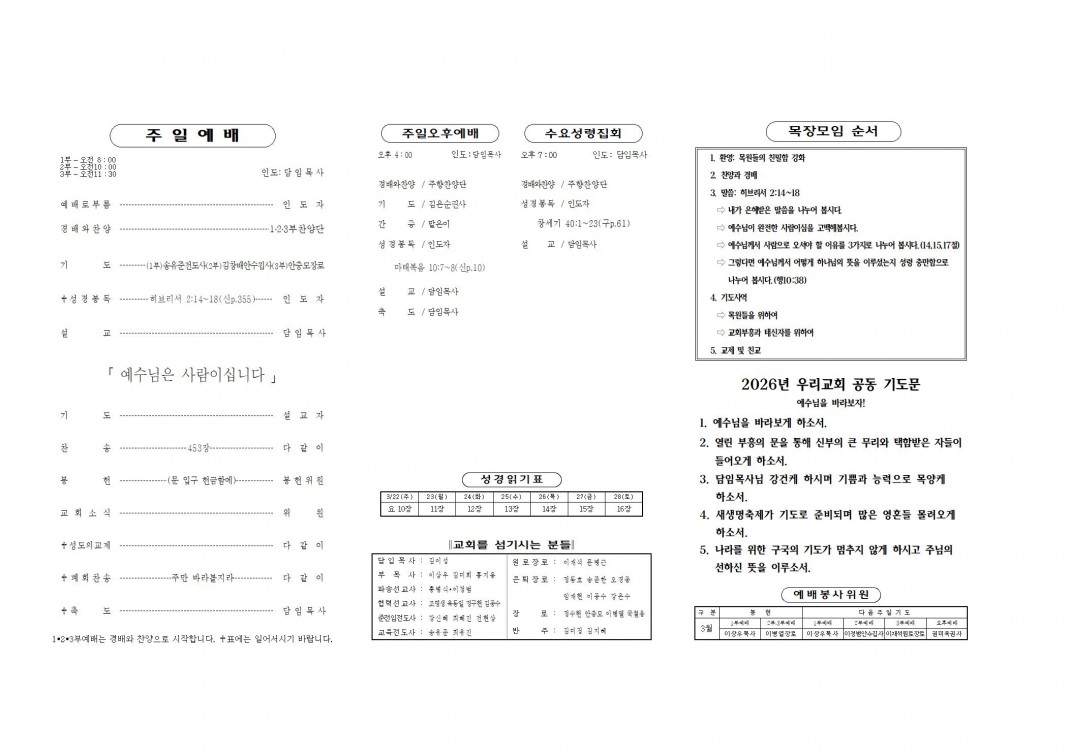 2026. 3. 22 주보 페이지 정보 작성자최고관리자 댓글 0건 조회 185회 작성일 26-03-20 20:43 본문 . 첨부파일 20260322.pdf (337.5K) 1회 다운로드 | DATE : 2026-03-20 20:43:00 목록 이전글2026. 3. 29 주보 26.03.27 다음글2026. 3. 15 주보 26.03.13 댓글목록 댓글목록 등록된 댓글이 없습니다.