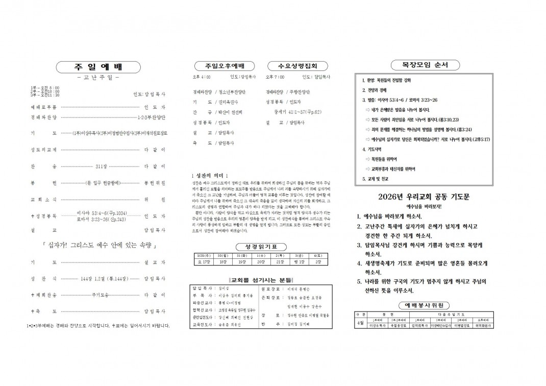 2026. 3. 29 주보 페이지 정보 작성자최고관리자 댓글 0건 조회 191회 작성일 26-03-27 20:34 본문 . 첨부파일 20260329.pdf (345.0K) 1회 다운로드 | DATE : 2026-03-27 20:34:16 목록 이전글2026. 4. 5 주보 26.04.03 다음글2026. 3. 22 주보 26.03.20 댓글목록 댓글목록 등록된 댓글이 없습니다.
