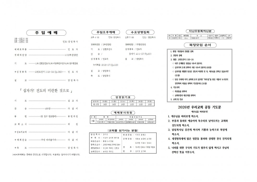 2026. 4. 19 주보 페이지 정보 작성자최고관리자 댓글 0건 조회 46회 작성일 26-04-17 19:57 본문 . 첨부파일 20260419.pdf (336.2K) 0회 다운로드 | DATE : 2026-04-17 19:57:42 목록 다음글2026. 4. 12 주보 26.04.10 댓글목록 댓글목록 등록된 댓글이 없습니다.